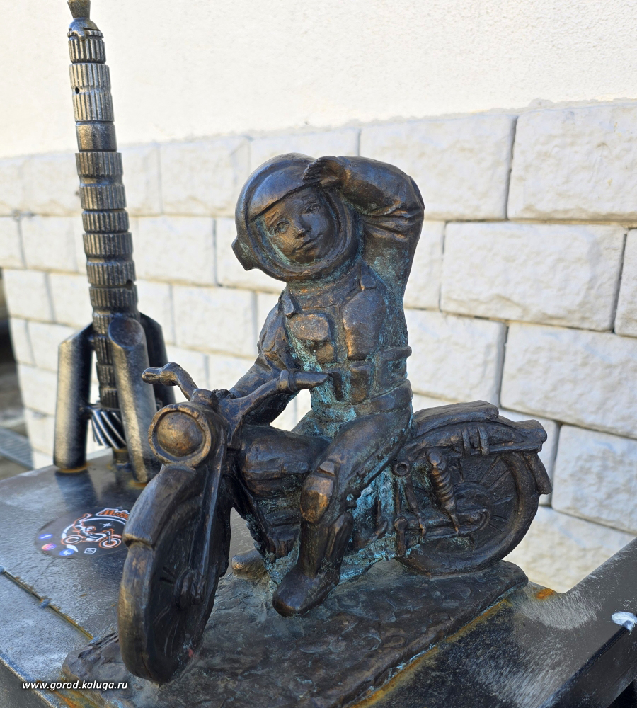 В преддверии Дня рождения мотоцикла, 28 августа 2025 года, состоялось торжественное открытие мини-скульптуры. Мотоциклист остановился по адресу г.Калуга, ул.Салтыкова-Щедрина, д.76, кор.1, возле магазина «Motokaluga». «Очень здорово, что в Калуге появился такой бренд «Космонавтики». У нас получился мини арт-объект с мотоциклами для гостей и калужан. Приходите, фотографируйтесь, наслаждайтесь атмосферой, отвлекайтесь от работы и быта», - сказал владелец мотосалона Евгений Скалозуб. |